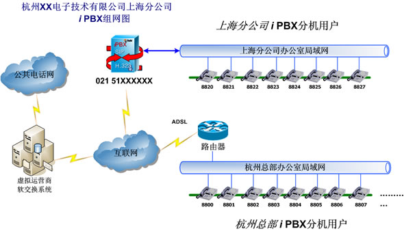 iPBX系統(tǒng)上。實現(xiàn)內(nèi)部通話免費的同時,也使杭州總部的用戶能夠直接享受優(yōu)惠的VoIP資費。