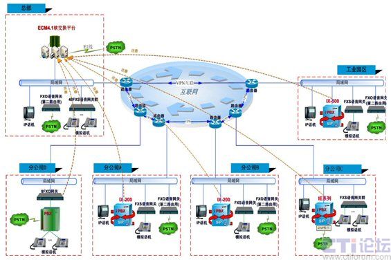 - 在各分公司使用Polylink的iPBX產(chǎn)品進(jìn)行組網(wǎng)。