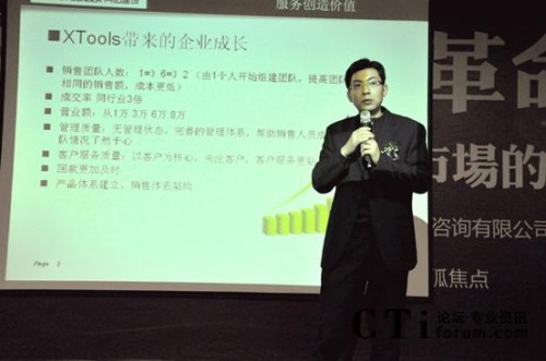 另外,濟南創(chuàng)弈工場總經理趙小峰任曉峰與現(xiàn)場嘉賓分享了自身創(chuàng)業(yè)與成長過程。創(chuàng)弈工場科技有限公司成立于2008年,是由山東大學創(chuàng)業(yè)團隊發(fā)展而來的、以先進電子商務架構和企業(yè)CI設計專家為目標的公司。趙總任總是一位80后互聯(lián)網新銳,他表示:“公司運用XTools具有管理思想的系統(tǒng)幫助管理這支年輕的隊伍,使其健康發(fā)展,對于創(chuàng)業(yè)者來說,銷售體系的管理是至關重要的,這樣我們少走了彎路!