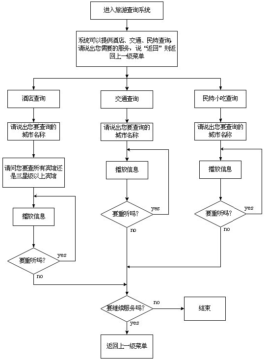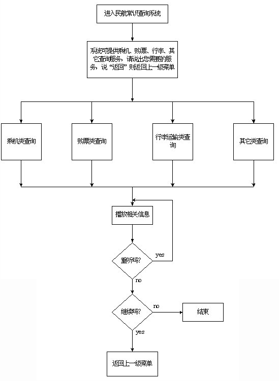 該系統(tǒng)主要采用語音技術實現航班信息查詢,系統(tǒng)的主業(yè)務流程如圖一至五示。