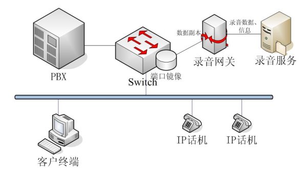 NETLOG VOIP語(yǔ)音記錄系統(tǒng)可以方便靈活的支持任何網(wǎng)絡(luò)結(jié)構(gòu),并可以根據(jù)用戶要求指定工作的方式。由于采用端口鏡像技術(shù),如果要直接采用Switch連接,則要求Switch必須支持端口鏡像功能;如果Switch不支持端口鏡像,則將所有要錄音的話機(jī)與錄音網(wǎng)關(guān)連接在同一個(gè)集線器上,錄音網(wǎng)關(guān)支持這種工作方式。