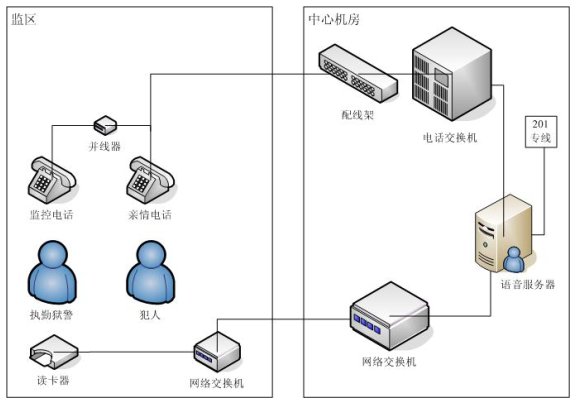 親情電話管理系統(tǒng)在系統(tǒng)設(shè)計(jì)中充分考慮監(jiān)獄的需求與特點(diǎn),不但包含了一般親情電話錄音所需的全部功能,而且還融合了獄政管理的功能,整個系統(tǒng)采用集中式方式,在中心機(jī)房部署一套親情電話錄音服務(wù)器,各個監(jiān)區(qū)監(jiān)控系統(tǒng)利用監(jiān)獄內(nèi)部的局域網(wǎng)聯(lián)結(jié)成一個整體,形成一個能監(jiān)控監(jiān)獄親情電話的全網(wǎng)。這樣即可以在每個監(jiān)區(qū)監(jiān)聽,也可以在監(jiān)獄內(nèi)部網(wǎng)的任何地方對親情電話進(jìn)行全程監(jiān)視。該系統(tǒng)能夠完全滿足目前監(jiān)獄的需求,產(chǎn)品性價比遠(yuǎn)遠(yuǎn)高于市場上其他同類產(chǎn)品。