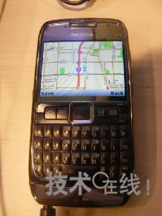 與此同時,NAVTEQ的展示會場上也進行了使用Probe信息、提供塞車信息的演示(圖3)。該公司在諾基亞的手機“NOKIA E71”上,配備了美國Garmin International的路線搜索引擎。