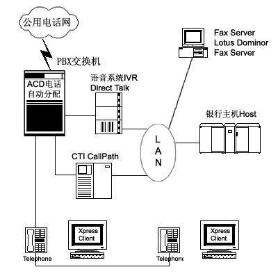 Call Center通過(guò)計(jì)算機(jī)技術(shù)和電話語(yǔ)音技術(shù)的結(jié)合,可為銀行的客戶提供集中和規(guī)范化的服務(wù)。Call Center通過(guò)與銀行的業(yè)務(wù)系統(tǒng)銜接可以為銀行的客戶提供金融服務(wù),例如,金融查詢,金融轉(zhuǎn)帳,金融交易等服務(wù)。