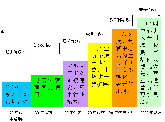日本市場是全球較為成熟的呼叫中心市場之一,呼叫中心的應用遍布各行各業(yè)。在整體呼叫中心行業(yè)產生的市場價值中,由呼叫中心外撥直接產生的占1/4強,50%的呼叫中心配備了專用外撥設備。這說明呼叫中心已完全脫離了服務窗口的概念,成為了企業(yè)營銷的有力工具,呼叫中心已高度利潤中心化。