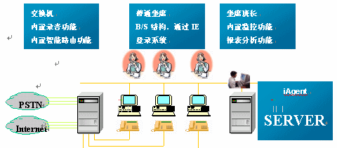 一體化解決方案接入設(shè)備采用浩豐時(shí)代自主研發(fā)的技術(shù)先進(jìn)的一體化交換機(jī)―xContact。它在功能上已經(jīng)超越了傳統(tǒng)的板卡式交換機(jī)甚至電信級(jí)交換機(jī),將呼叫中心的特有功能和強(qiáng)大的程控交換機(jī)功能巧妙的結(jié)合在一起,向客戶提供全面、完整的一站式服務(wù)。