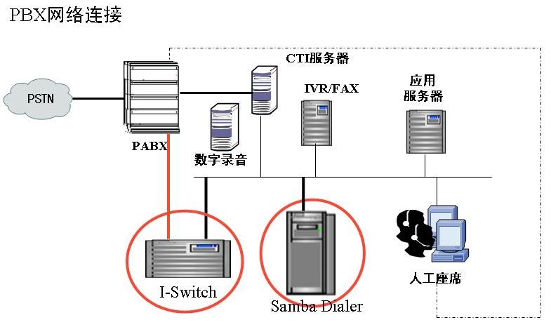 Samba Dialer和潤迅通信哈里斯數(shù)字程控交換機利用ISDN PRI進行匯接,共享現(xiàn)有話機,大大保護了投資。Samba Dialer直接通過PRI進行信令檢測,不依賴程控交換機的CTI功能,這樣可以避免大量外撥電話對CTI資源的占用而影響呼入業(yè)務的運作。另外,交換機的CTI接口一般不具備很高的穩(wěn)定性,Samba