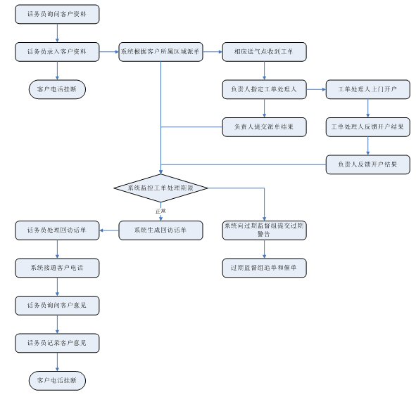 投訴受理:通過人工、自動語音、短信、傳真、Email、web等方式受理各種用戶投訴,并可以工單的方式流轉(zhuǎn)到相關(guān)的部門進行處理,并記錄處理過程和跟蹤處理結(jié)果。能夠處理從上級部門、消協(xié)等方面轉(zhuǎn)過來的用戶投訴。