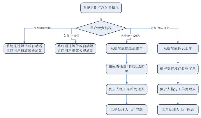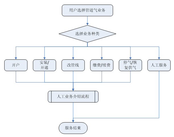 業(yè)務(wù)咨詢:用戶通過人工、自動語音等方式咨詢有關(guān)政策法規(guī)、資費標準、用氣常識、報裝方法等,系統(tǒng)以語音、傳真、Email、短消息等方式回復客戶。