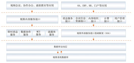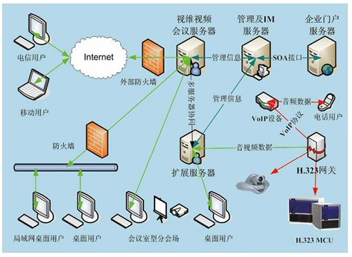 視維系統(tǒng)是一個基于IP網絡的綜合業(yè)務通訊平臺,通過多網絡接入方式實現(xiàn)網通、電信、聯(lián)通等用戶間高速互通;通過H.323模塊將企業(yè)內部原有的硬件設備與視維系統(tǒng)鏈接起來,有效的節(jié)約了投資;其他如SIP模塊,短信模塊,固網電話接入等都可以根據用戶需要進行擴展。視維系統(tǒng)可以支持分布式視頻服務器集群,可利用企業(yè)內部網絡或者互聯(lián)網構建超大規(guī)模企業(yè)綜合通訊平臺;凇懊嫦蚍⻊阵w系架構(SOA)”設計架構,實現(xiàn)很靈活地方便地與其業(yè)務系統(tǒng)如OA,HR,CRM,