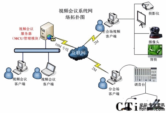 視維服務團隊根據(jù)陽光基業(yè)現(xiàn)有的網(wǎng)絡、硬件資源及其業(yè)務發(fā)展溝通需求,建議采用單服務器的系統(tǒng)架構(gòu),服務器設置在公司網(wǎng)絡中心,負責所有視頻會議的召開,在公司總部建立視頻會議主會場,其他機構(gòu)為分會場,實現(xiàn)“網(wǎng)絡面對面”的音視頻互動式溝通與交流,系統(tǒng)網(wǎng)絡拓撲和配置如下: