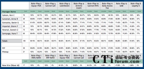 AT&T案例(7):一般來講,新員工的培訓(xùn)集中在知識、工具和客戶互動技巧等質(zhì)量因素,不是如何提升效率。主管每天利用工具評估坐席是否使用了培訓(xùn)中的內(nèi)容。另外針對指標(biāo)最差的5%員工,按1:6的比例配備最有經(jīng)驗的QA、培訓(xùn)師和主管進(jìn)行輔導(dǎo)。次差的10%則不改變班次,而是實施另一項專門設(shè)計的培訓(xùn)計劃。