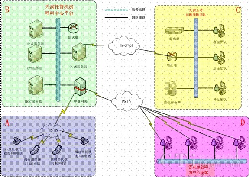 方案二:400電話+托管呼叫中心平臺+坐席統(tǒng)一部署在總部