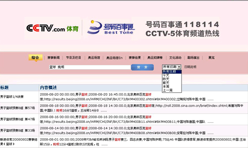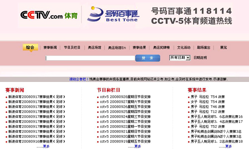 從8月8日北京奧運(yùn)會(huì)開(kāi)幕到9月17日北京殘奧會(huì)閉幕,由北京拓爾思信息技術(shù)股份有限公司(簡(jiǎn)稱(chēng)TRS)提供核心技術(shù)動(dòng)力的中國(guó)電信118114號(hào)碼百事通與CCTV-5攜手打造“央視體育頻道服務(wù)熱線”, 用最好的服務(wù),最新、最快、最準(zhǔn)確的信息,為奧運(yùn)會(huì)提供優(yōu)質(zhì)服務(wù),使得號(hào)碼百事通118114真正成為奧運(yùn)觀眾最值得信賴(lài)的信息服務(wù)平臺(tái)。