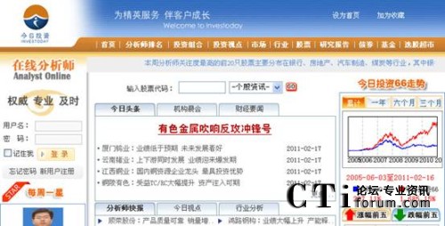 深圳今日投資財經資訊有限公司是一家致力于為投資者提供專業(yè)證券數據統計和個性化證券資訊的服務提供商。今日投資按照國際標準對70余家券商研究所,1800名一線分析師的研究成果進行深入加工和數據提煉,經過多年的積累,建立了國內最早、最全、最專業(yè)的證券投資分析數據庫,并充分借鑒國內外先進的投資方法,獨創(chuàng)出三眼投資統計分析法,分別從基本面、技術面、機構認同度三個方面,對個股、行業(yè)、市場進行各種綜合數據統計和研究分析,依托強大的網絡資源和合作渠道,通過互聯網、移動互聯網、手機增值業(yè)務、雜志媒體、電視媒體、廣播電臺等渠道為投資者提供各具特色的專業(yè)數據統計和個性化證券資訊服務。目前今日投資的產品有:在線分析師、好股網、金融E家、上市公司市值管理系統、手機炒股系統、行情分析師、基金經理調查、證券導刊等。