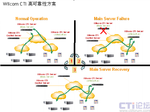 CTI 高可靠性方案確保在系統(tǒng)出現故障以后,坐席軟電話登入/登出不受任何影響。