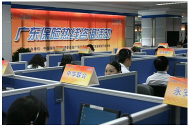 2007年6月23日下午,由中國電信廣東公司和廣東保險(xiǎn)監(jiān)督管理局合作舉辦的4008991288廣東保險(xiǎn)業(yè)電話咨詢熱線活動(dòng)在中國電信廣州分公司客戶服務(wù)中心舉行。省保監(jiān)局、省保險(xiǎn)協(xié)會等保險(xiǎn)監(jiān)管行業(yè)人員進(jìn)行現(xiàn)場監(jiān)聽,廣東省內(nèi)39家保險(xiǎn)公司的44位總經(jīng)理親自接聽市民的咨詢或投訴,其他保險(xiǎn)資深專家接受市民保險(xiǎn)業(yè)務(wù)咨詢。兩小時(shí)的熱線活動(dòng)成功接通1122個(gè)電話,并當(dāng)場解決和答復(fù)856個(gè)咨詢和投訴問題。