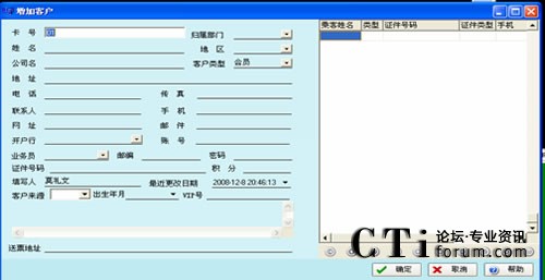 每次用戶呼入時,CRM系統(tǒng)會自動彈出用戶所有的相關(guān)資料,如電話號碼,客戶姓名,電子郵件,地址,航班,目的地,酒店等等,大大方便了坐席員對新老客戶資料的維護(hù)。