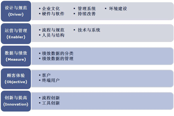 呼叫中心能力成熟度認(rèn)證涉及設(shè)計(jì)與規(guī)范、運(yùn)營(yíng)與管理、數(shù)據(jù)與績(jī)效、顧客體驗(yàn)、創(chuàng)新與提高5大類(lèi),14項(xiàng)評(píng)審指標(biāo)以及若干個(gè)值得關(guān)注的管理項(xiàng)目。是一套完整的“客戶為中心”的績(jī)效管理工具。