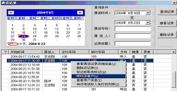 如果有電話打入時(shí),在屏幕的右側(cè)會(huì)彈出一個(gè)對(duì)話框,它顯示了當(dāng)前來(lái)電的號(hào)碼和通話人(如果在地址簿中沒(méi)有記錄則顯示為未知),點(diǎn)擊彈出全部菜單功能,它相當(dāng)于一個(gè)功能強(qiáng)大的通話記事本,用它既可以邊接聽(tīng)電話邊整理相關(guān)通話的文字記錄,又可以錄下通話的全部?jī)?nèi)容。如果這個(gè)電話是您不愿接聽(tīng)的,也可以將它設(shè)置為“免打擾”,這樣,這個(gè)號(hào)碼以后將存入免打擾名單中,若此號(hào)碼再呼入,系統(tǒng)將自動(dòng)掛斷此呼叫。如果這個(gè)電話是您認(rèn)為的重要客戶打過(guò)來(lái)的,您也可以將此號(hào)碼添加到重要客戶組中,以便您今后接聽(tīng)或設(shè)置電話轉(zhuǎn)移時(shí)能與其它呼入電話相區(qū)分。