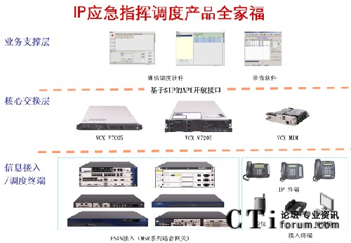 說明:網(wǎng)音應急指揮調度系統(tǒng)結構上分為業(yè)務支撐層、呼叫控制層和信息接入/調度終端。