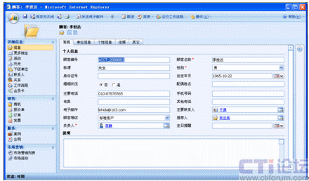 下圖是客戶來電時(shí)CRM系統(tǒng)中客戶資料的彈出: