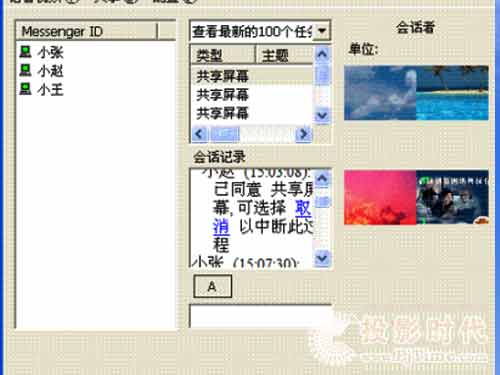 清揚即時通信與視頻會議軟件: 通過視頻會議,只要坐在計算機(jī)前,就可以與本地或者外地,固定或者移動,局域網(wǎng)或者廣域網(wǎng)的同事們進(jìn)行跨地域空間的卻又面對面的視頻會議。通過屏幕共享,坐電腦前能夠觀看遠(yuǎn)程的電腦操作,也可以操作電腦讓遠(yuǎn)程電腦觀看;通過共享播放,把VCD教育片播放給遠(yuǎn)程電腦觀看,也可以收看遠(yuǎn)程的播放;通過即時通信,把通知瞬間發(fā)布到所有同事,也可以把文件瞬間傳送給大家,還能夠接受來自同事的通知信息和文件;通過遠(yuǎn)程協(xié)助,可以求助同事遠(yuǎn)程操作自己的電腦等等,……,有了清揚即時通信與視頻會議,遠(yuǎn)在天涯的辦公室已近在眼前,移動辦公和異地辦公也不再有隔閡。