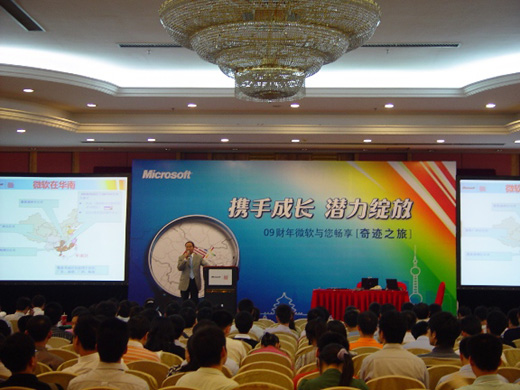 9月5日,微軟2009財(cái)年奇跡之旅廣州站活動(dòng)在亞洲國際大酒店亞洲廳隆重的舉行。本次活動(dòng)邀請到約計(jì)四百多位客戶參加,遍及金融、電力、專業(yè)服務(wù)、制造、醫(yī)藥、物流,等各行業(yè)。