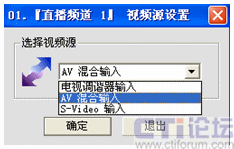其中支持三種視頻源:從電視調(diào)諧器輸入是對應(yīng)電視光纖信號輸入,av混合輸入則對應(yīng)從電視卡的av端子輸入,s-video輸入對應(yīng)從S-video端子輸入。由于遠(yuǎn)教接收機只能輸出av信號,我這里是連接電視卡的av端子接收遠(yuǎn)教電視節(jié)目的。因此這里選擇“AV混合輸入”,確定即可。