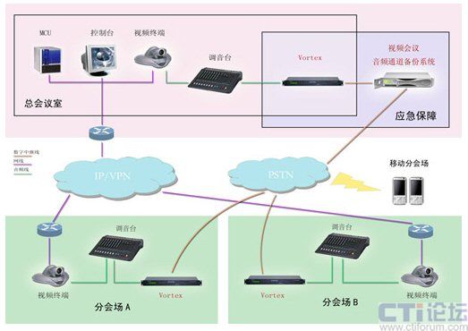 VORTEX 2241:3臺 放置于北京主會場。該設備可實現(xiàn)視頻會議的語音同備份語音無縫結合,確保兩路聲音切換時,與會者不會察覺;顯著減少發(fā)至其它站點的聲音中的環(huán)境噪聲,從而消除麥克風和線路輸入和電話接聽音頻的環(huán)境噪聲,提高現(xiàn)有會議裝置的整體音質(zhì)。