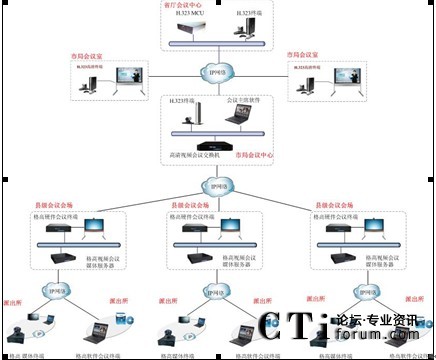 公安視頻會議系統(tǒng)建設(shè)主要依托現(xiàn)有的寬帶IP網(wǎng),建設(shè)從市局到各縣區(qū)分局及各鄉(xiāng)鎮(zhèn)派出所之間的交互式視頻會議系統(tǒng),最終建成的系統(tǒng)要實(shí)現(xiàn)全省公安系統(tǒng)每個點(diǎn)都能互通。