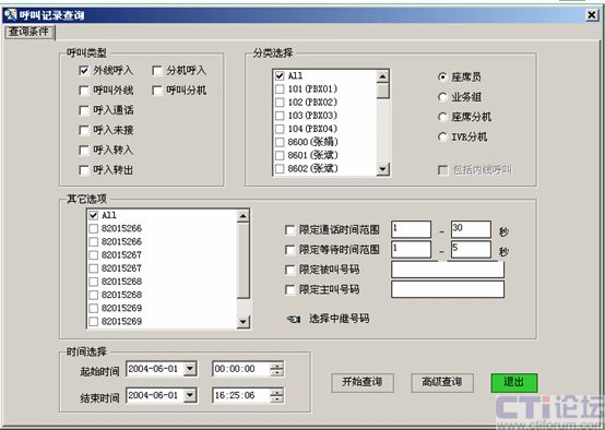 如圖所示,可以設(shè)定多種查詢條件組合,查找通話記錄。