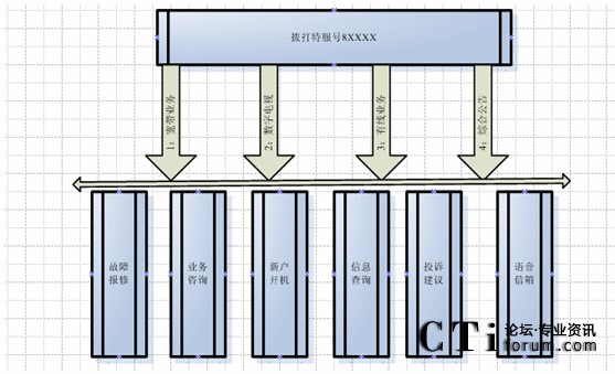 客戶利用電話、傳真等撥打某一特服號碼(如8xxxx)進(jìn)入客戶服務(wù)中心系統(tǒng),本系統(tǒng)依托各類業(yè)務(wù)技術(shù)支持系統(tǒng)和網(wǎng)絡(luò)系統(tǒng),通過人工受理或自動語音服務(wù)等方式全天24小時(shí)不間斷地為客戶提供各種服務(wù),形成了對外服務(wù)于客戶的無形窗口,對內(nèi)管理、分析、決策相結(jié)合的客戶服務(wù)中心。