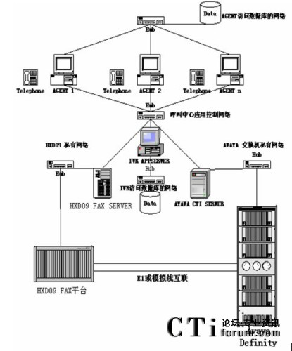 根據(jù)客服系統(tǒng)的容量,坐席多特點,一般都采用國外品牌交換機做為接入設(shè)備,用HXD09設(shè)備作FAX或IVR系統(tǒng)?头臉I(yè)務(wù)主要為語音和傳真。HXD09系統(tǒng)在傳真和語音處理處理上在國內(nèi)產(chǎn)品的技術(shù)和價格上都有巨大優(yōu)勢。