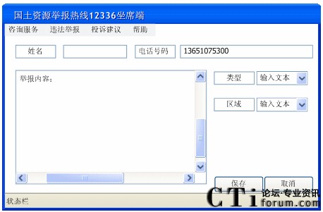 話務(wù)人員電腦上提供違法舉報(bào)記錄軟件,收集公眾舉報(bào)資料的同時(shí)收集公眾提到的情況,并可進(jìn)行初步的分析整理,為上級(jí)部門(mén)提供數(shù)據(jù)基礎(chǔ)。