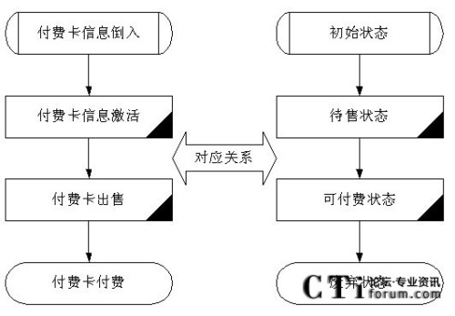 預(yù)付費業(yè)務(wù)向用戶提供實時業(yè)務(wù)消費和卡充值服務(wù)。當(dāng)持卡用戶欲通過充值卡使用某種業(yè)務(wù)時,首先必須對其卡進行“身份驗證”(核對卡號及密碼),并確認其卡中的剩余金額是否足夠支付該種業(yè)務(wù)。若驗證、確認通過后,才允許用戶使用該種業(yè)務(wù),根據(jù)用戶卡上的余額和該種業(yè)務(wù)的資費政策計算出用戶使用該業(yè)務(wù)的最大時長,并在其使用的過程中根據(jù)該種業(yè)務(wù)的資費政策進行計費,對其卡中的金額進行實時核減。若用戶使用該業(yè)務(wù)的時間達到最大時長限制,則系統(tǒng)向用戶發(fā)出超時報警,提示用戶中斷使用或者使用另外一張卡。