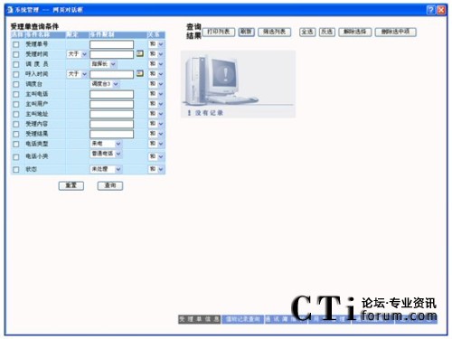 受理單分為為兩種基本類型:呼入電話受理單與呼出電話受理,可通過(guò)單選按鈕在這兩種類型的受理單的列表之間進(jìn)行切換,默認(rèn)為呼入電話受理單列表。