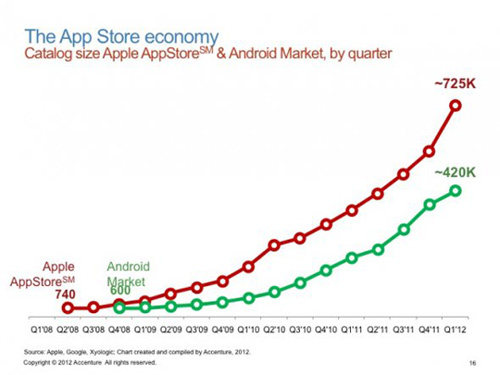 蘋果iOS與Google的Android在APP數(shù)量上的增長(zhǎng)對(duì)比