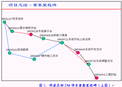 中國網(wǎng)通集團的"中國網(wǎng)通集團大客戶信息管理分析及一站服務(wù)系統(tǒng)"(以下簡稱網(wǎng)通總部CRM項目)的合同簽約儀式在這里舉行,合同總額約為人民幣3000萬元。而作為合同執(zhí)行方的是HOLLYCRM(合力金橋軟件)公司,在一個月前才從北京合力金橋系統(tǒng)集成公司拆分出來。HOLLYCRM的總裁曲道俊先生在拿到這份合同時輕輕松了一口氣,用艱苦卓絕、峰回路轉(zhuǎn)、跌宕起伏等等一系列字眼來形容這連續(xù)4個月的應(yīng)標(biāo)過程決不為過,畢竟所有的努力并沒有白費。但曲道俊先生并沒有完全沉浸在這種商場角逐取勝的快樂當(dāng)中, 畢竟這么大的一個項目要由一個前身為事業(yè)部的公司來完全承擔(dān)實施畢竟不是一件容易的事, 他馬上整理了思路, 撥通了負責(zé)這個項目實施的項目經(jīng)理盧毅的電話:半小時后我們辦公室見。