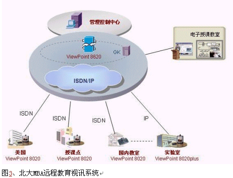 北京大學(xué)是我國首批被確定開展現(xiàn)代遠程教育試點的院校之一,自1999年起至今,北京大學(xué)現(xiàn)代遠程教育已經(jīng)遍布全國18個省市,2002年北大MBA作為國內(nèi)先進的遠程教育項目作為一項重要的國際間的教育交流項目,欲通過建設(shè)視訊系統(tǒng)和美國互通,進行國際間的MBA遠程教學(xué),同時可以進行幾個分點之間的交互式視頻會議,提高學(xué)習(xí)效率。
