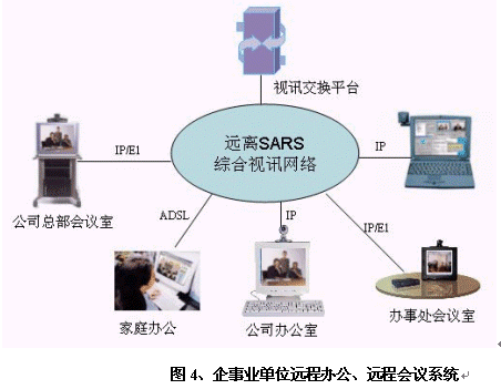 非典型肺炎不但對國家的經(jīng)濟造成了重大的損失,而且使得全社會對"非典"噤若寒蟬,大家對出差甚至外出都異常緊張。華為公司提供為個人家庭辦公、探親訪友的遠程多媒體通信解決方案,大家在家里即可通過網(wǎng)絡(luò)和親朋好友"面對面"交流、在家中辦公。減少外出、遠離人員眾多地區(qū),有效預(yù)防非典。對于有條件的用戶群可以推薦在現(xiàn)有寬帶線路或新增寬帶線路上購買軟件,即可實現(xiàn)親朋好友間的個人視頻通信;對于暫不具備寬帶條件的群體,如學(xué)生等,可以考慮在重點營業(yè)廳設(shè)立專門會議室或者視訊公話亭等,提供預(yù)約視頻服務(wù),滿足其溝通的需求。