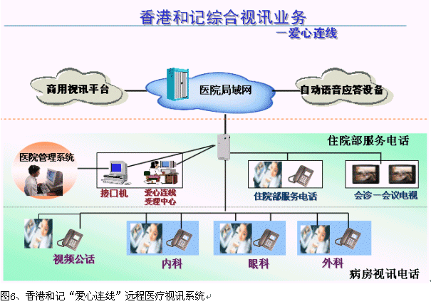 目前,香港和記電信已經(jīng)在香港的"瑪麗醫(yī)院"大廳、非典病房、以及其他安全場所安裝了個人視頻系統(tǒng),通過該系統(tǒng),病人和家屬就可以進行"面對面"的交流,無論對于非典病人的康復(fù),還是保護病人家屬,防止非典傳染都有及其重要的作用。