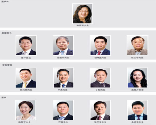 年報顯示,2010年底,華為全體持股員工投票選舉產(chǎn)生了51名持股員工代表,并由這51名持股員工代表于2011年1月選舉出新一屆的董事會和監(jiān)事會成員。新一屆董事會成員為孫亞芳、郭平、徐直軍、胡厚崑、任正非、徐文偉、李杰、丁耘、孟晚舟、陳黎芳、萬飚、張平安、余承東;監(jiān)事會成員為梁華、彭智平、任樹錄、田峰、鄧飚。這也是華為首次披露所有董事會、監(jiān)事會成員名單、簡歷和照片。