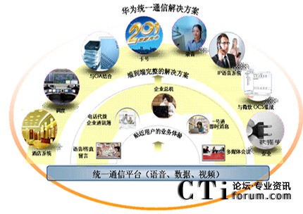 華為企業(yè)統(tǒng)一通信解決方案把語音、數據、視頻融合在統(tǒng)一的平臺上,基于該平臺可以方便實現IP語音系統(tǒng)、語音/數據會議系統(tǒng)、統(tǒng)一消息、話務臺、無線WIFI、安全、自助管理等多業(yè)務多系統(tǒng)的融合和協作。