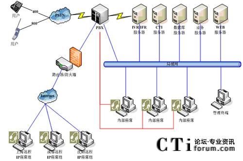 呼叫中心是一種基于CTI技術(shù)、充分利用通信網(wǎng)和計(jì)算機(jī)網(wǎng)的多項(xiàng)功能集成,并與企業(yè)連為一體的一個(gè)完整的綜合信息服務(wù)系統(tǒng),利用現(xiàn)有的各種先進(jìn)的通信手段,效地為客戶提供高質(zhì)量、高效率、全方位的服務(wù)。表面上看,呼叫中心是企業(yè)在最外層加上了一個(gè)服務(wù)層。實(shí)際上,它不僅對(duì)企業(yè)的外部用戶具有服務(wù)功能,同時(shí)也為企業(yè)內(nèi)部的管理、服務(wù)、調(diào)度、增值起到非常重要的協(xié)調(diào)作用。