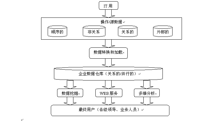 數(shù)據(jù)倉(cāng)庫(kù)是信息技術(shù)領(lǐng)域的新概念,是近幾年來(lái)迅速發(fā)展起來(lái)的一種信息存儲(chǔ)及管理技術(shù)。它存儲(chǔ)各種大量的、決策分析所需要的、歷史的、分散的數(shù)據(jù),經(jīng)過處理將這些數(shù)據(jù)轉(zhuǎn)換成集中統(tǒng)一、隨時(shí)可用的信息。它能方便地提供隨機(jī)查詢和各種分析處理,它具有在任何時(shí)間、就任何業(yè)務(wù)、回答任何問題的能力;利用數(shù)據(jù)倉(cāng)庫(kù)前端的數(shù)據(jù)挖掘工具和人工智能算法建立各種調(diào)查、分析和預(yù)測(cè)模型。