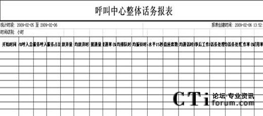 - 呼叫中心整體話務報表;