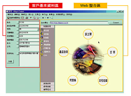 AltiGen可整合Web機制,Web為全世界Internet的標(biāo)準(zhǔn)介面,更是整合全球資源達(dá)無遠(yuǎn)弗屆境界的功臣,同時企業(yè)主可在其上輕易開發(fā)或整合其他程式,更可整合Web跑單 (Work Flow)、訂單等功能,使用者可一邊與客戶通話,一邊在電腦螢?zāi)簧舷掠唵位蚍峙晒ぷ鳎?jié)省人工跑單作業(yè)時間,提升作業(yè)效率,同時對于跑單狀況的追蹤管理皆可在統(tǒng)一介面獲得整合,任何更新的進(jìn)度都可第一時間掌握。