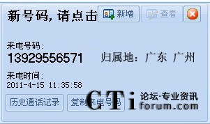 來電彈屏自動(dòng)顯示對(duì)方號(hào)碼歸屬地?cái)?shù)據(jù)信息;