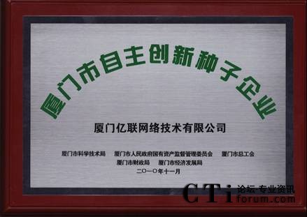 根據(jù)國(guó)家科技部、國(guó)務(wù)院國(guó)資委和全國(guó)總工會(huì)三部委制定的“創(chuàng)新型企業(yè)試點(diǎn)工作實(shí)施方案”和廈門市“技術(shù)創(chuàng)新引導(dǎo)工程實(shí)施方案”具體要求,市科技局、市國(guó)資委、市總工會(huì)、市財(cái)政局、市經(jīng)發(fā)局聯(lián)合開展了2010年廈門市自主創(chuàng)新示范、試點(diǎn)、種子企業(yè)評(píng)選工作。經(jīng)專家評(píng)審和市五部門聯(lián)合審核后,廈門億聯(lián)網(wǎng)絡(luò)技術(shù)有限公司(以下簡(jiǎn)稱億聯(lián))憑借科技、環(huán)保的產(chǎn)品和強(qiáng)大的研發(fā)實(shí)力獲得了廈門市自主創(chuàng)新種子企業(yè)獎(jiǎng)。